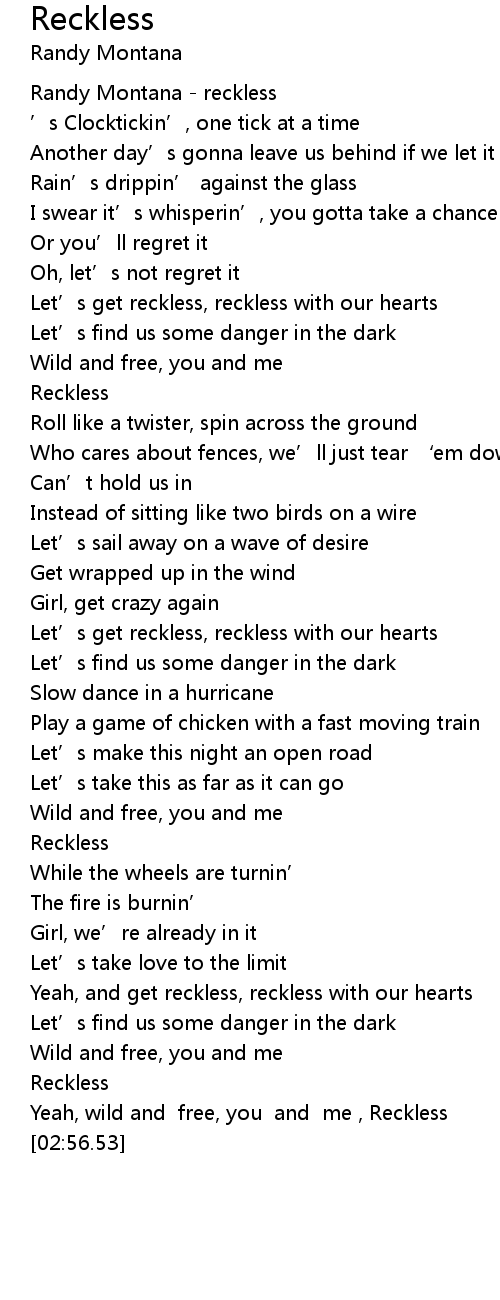 | [02:48.54] | Yeah, wild and free, you and me , Reckless |