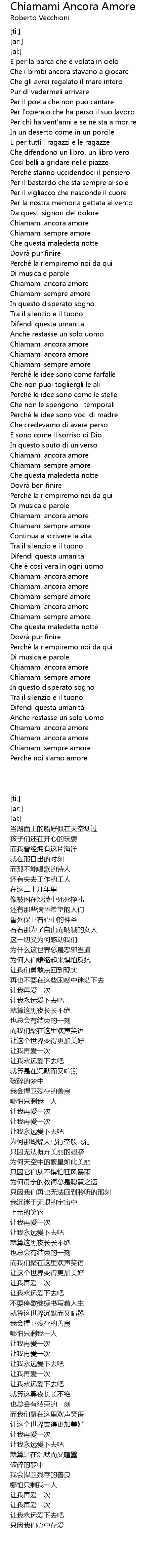 | [03:11.17] | Chiamami ancora amore |