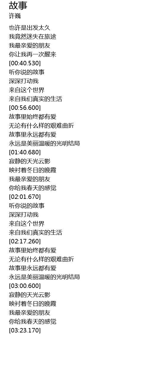 | [00:43.220] | 听你说的故事 |