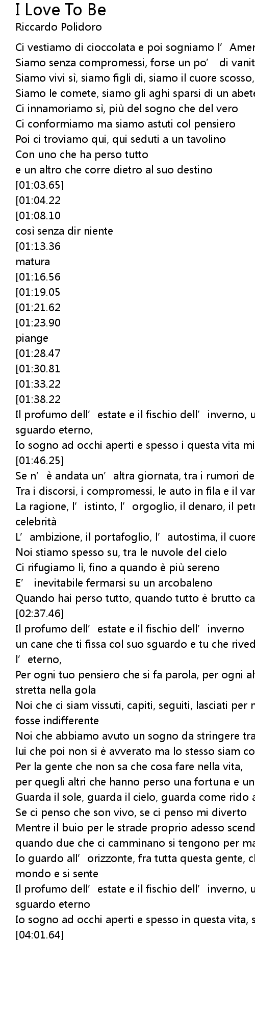 | [03:39.75] | Se ci penso che son vivo, se ci penso mi diverto |
