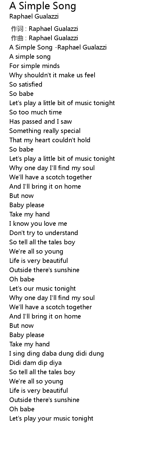 | [00:00.52] | A Simple Song Raphael Gualazzi |
