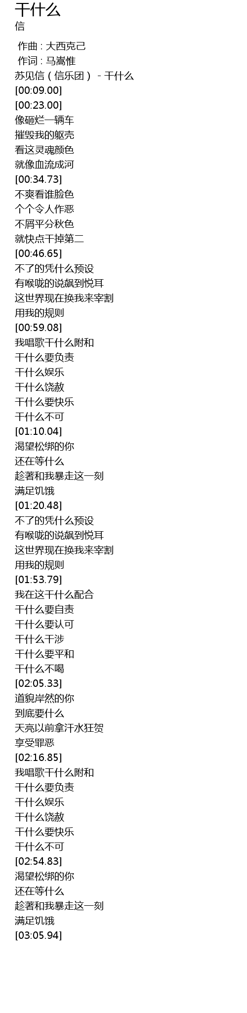 | [00:02.00] | 苏见信(信乐团) - 干什么 |