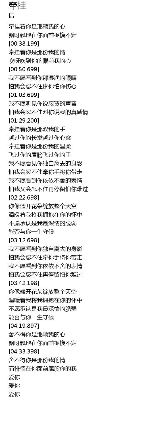 | [00:39.199] | 牵挂着你是那份我的情 |