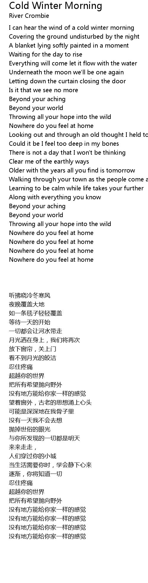 I can hear the wind of a cold winter morning |