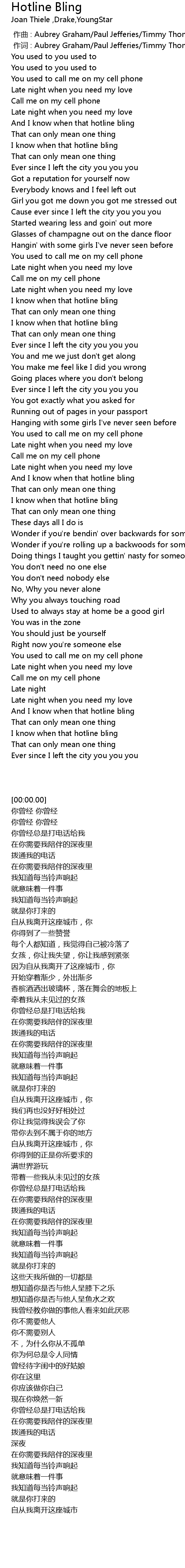 | [00:01.00] | 作词 : Aubrey Graham/Paul Jefferies/Timmy Thomas |