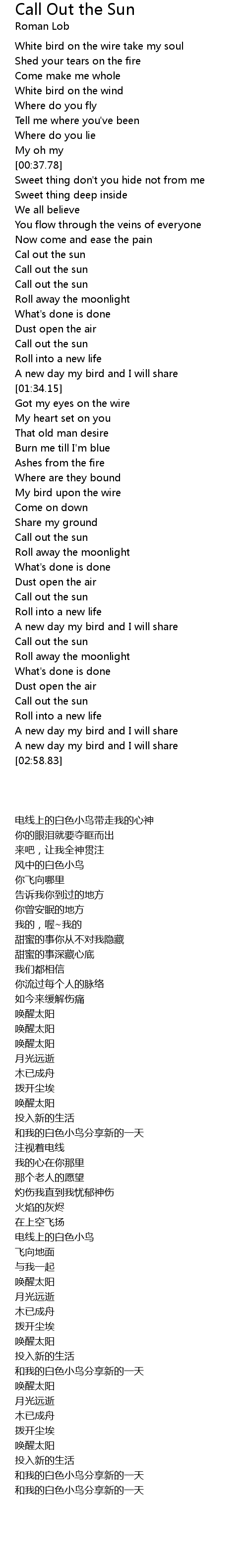 | [02:32.76] | Call out the sun |