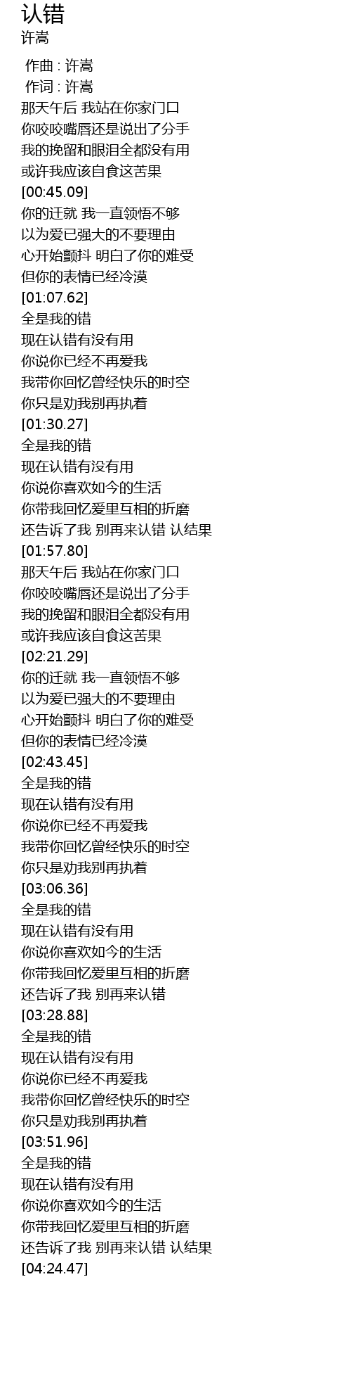| [01:48.65] | 还告诉了我 别再来认错 认结果 |