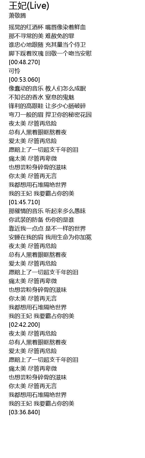 | [02:36.840] | 我的王妃 我要霸占你的美 |