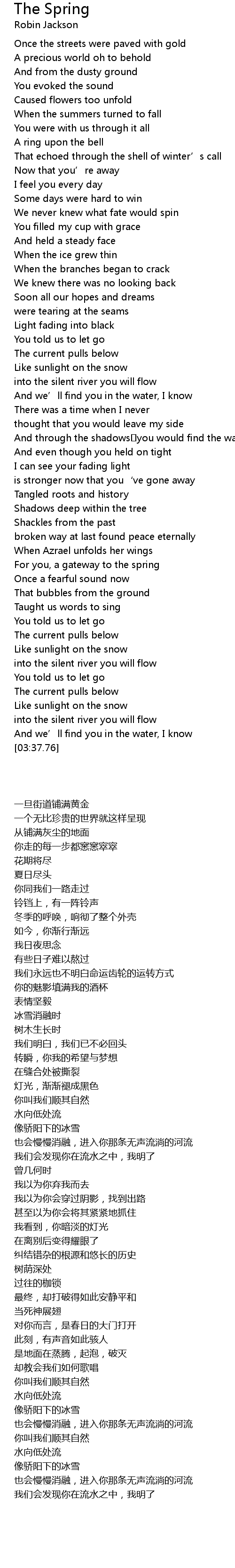 | [02:25.34] | For you, a gateway to the spring |
