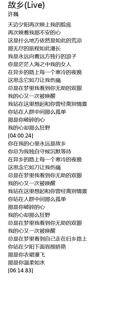| [04:27.40] | 你在我的心里永远是故乡 |