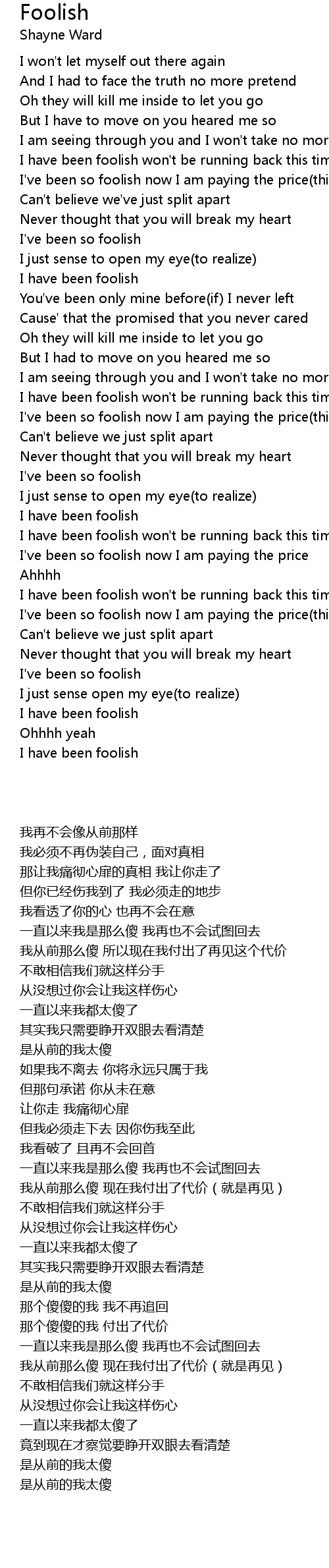 I have been foolish won't be running back this time(don't even try) |