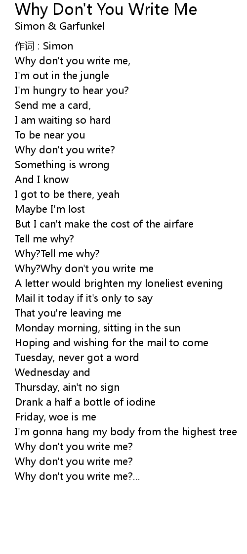 | Why? Why don' t you write me | |