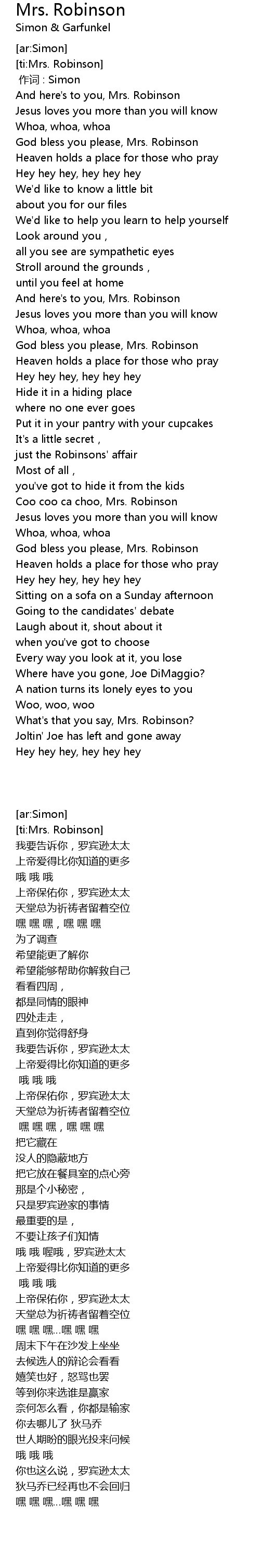 | [00:43.37] | God bless you please, Mrs. Robinson |