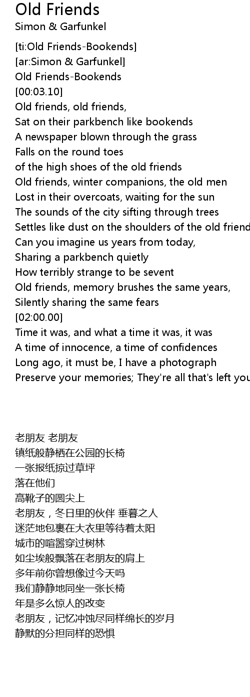 [ti:Old Friends-Bookends] |