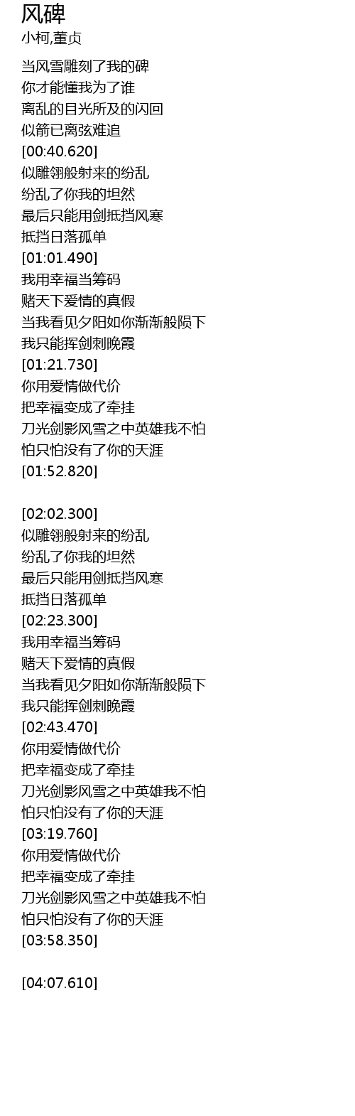 | [02:54.400] | 刀光剑影风雪之中英雄我不怕 |