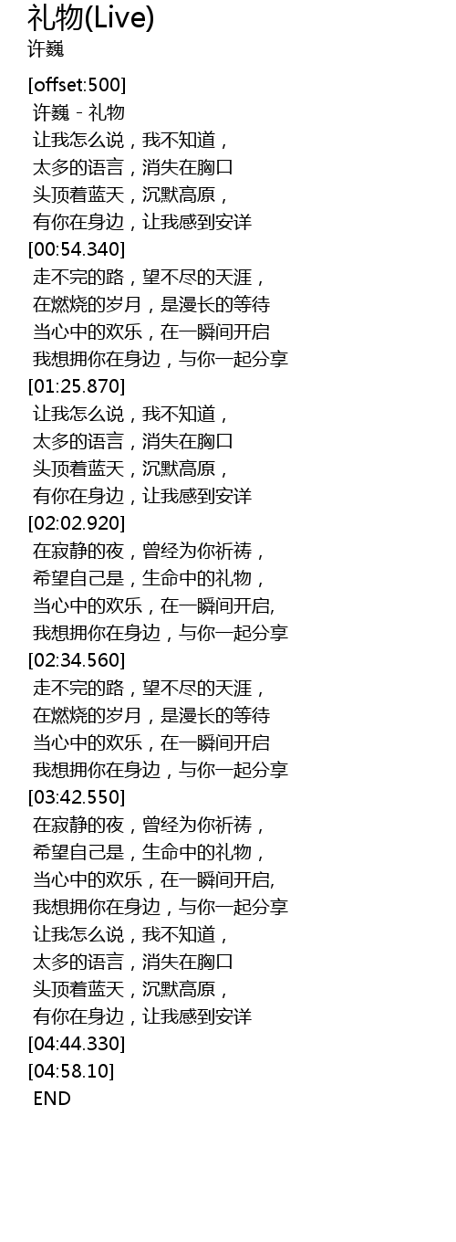 | [00:00.0] | 许巍 - 礼物 |
