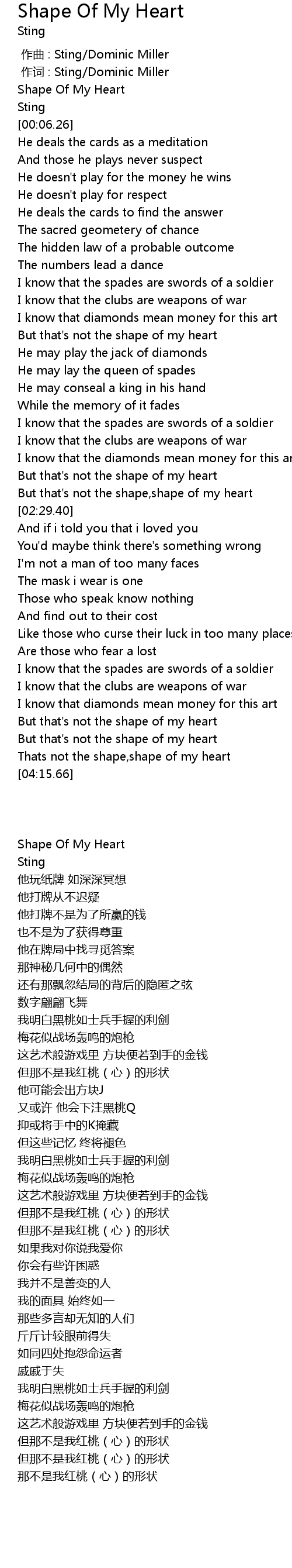 | [04:08.04] | Thats not the shape, shape of my heart |