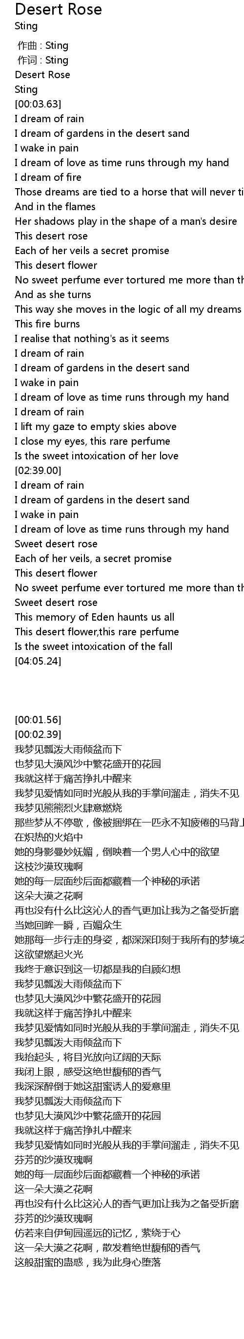 | [03:41.20] | No sweet perfume ever tortured me more than this |