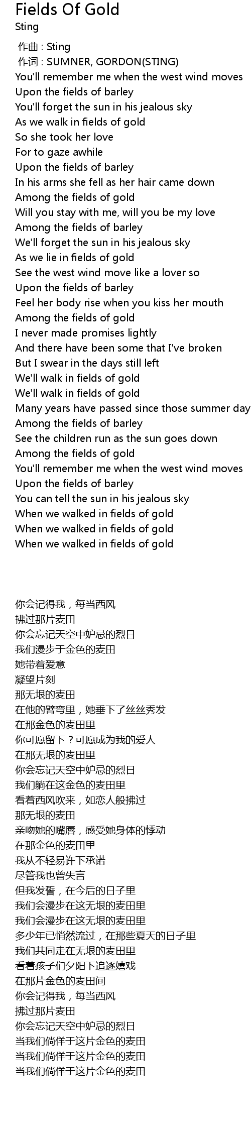 | [00:01.00] | 作词 : SUMNER, GORDON(STING) |