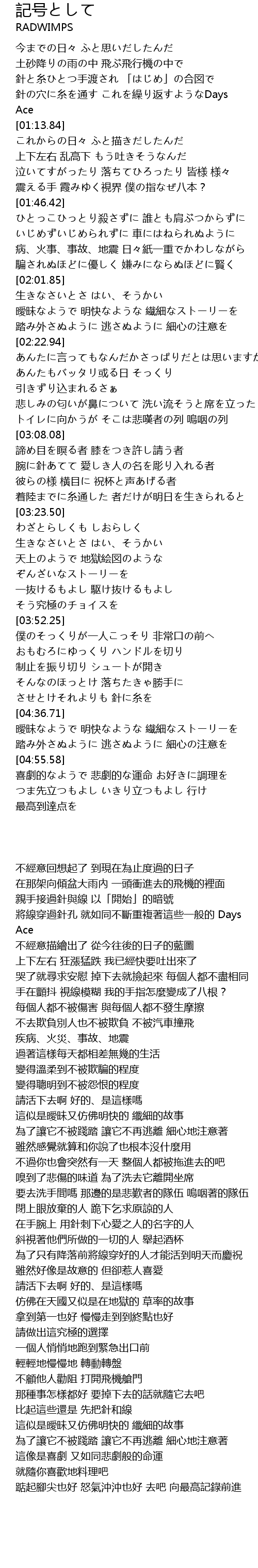 | [03:01.42] | トイレに向かうが そこは悲嘆者の列 嗚咽の列 |