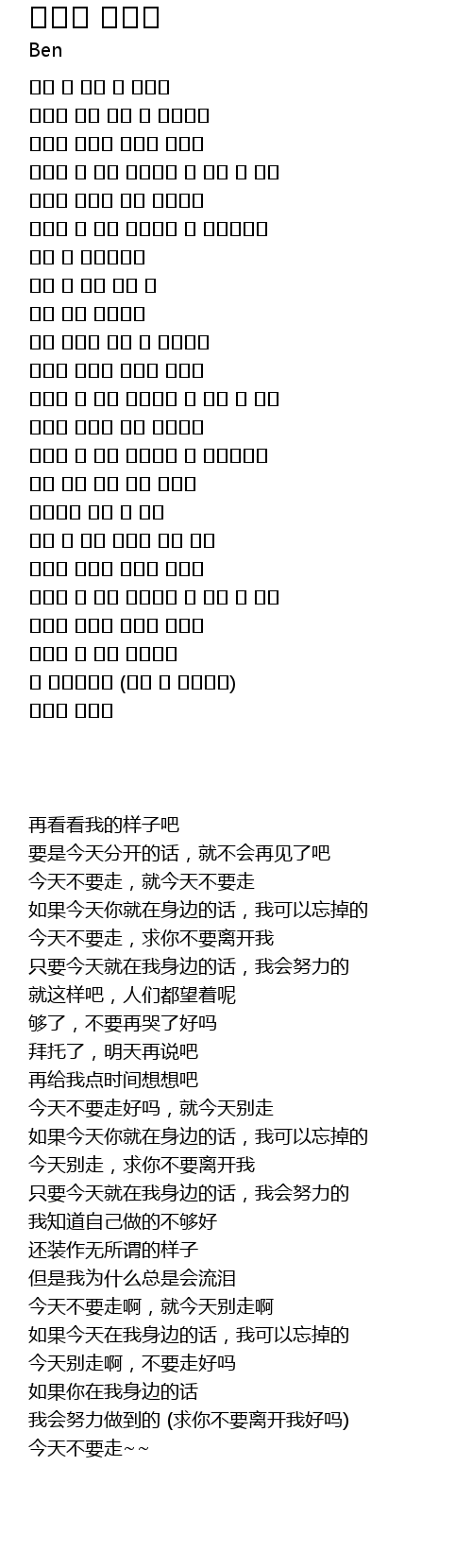 오늘만 더 옆에 있어주면 나 잊을 수 있어 |