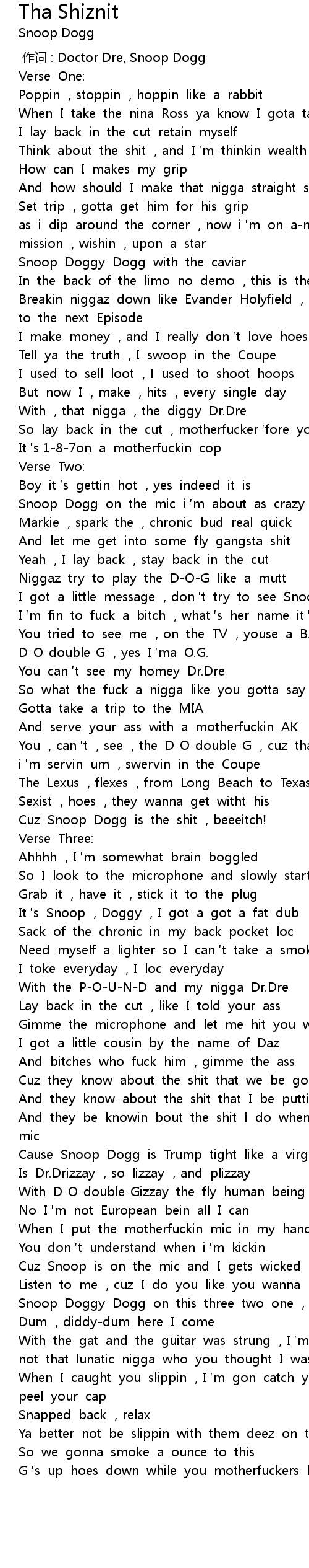 | [02:06.14] | Cuz Snoop Dogg is the shit ,beeeitch! |