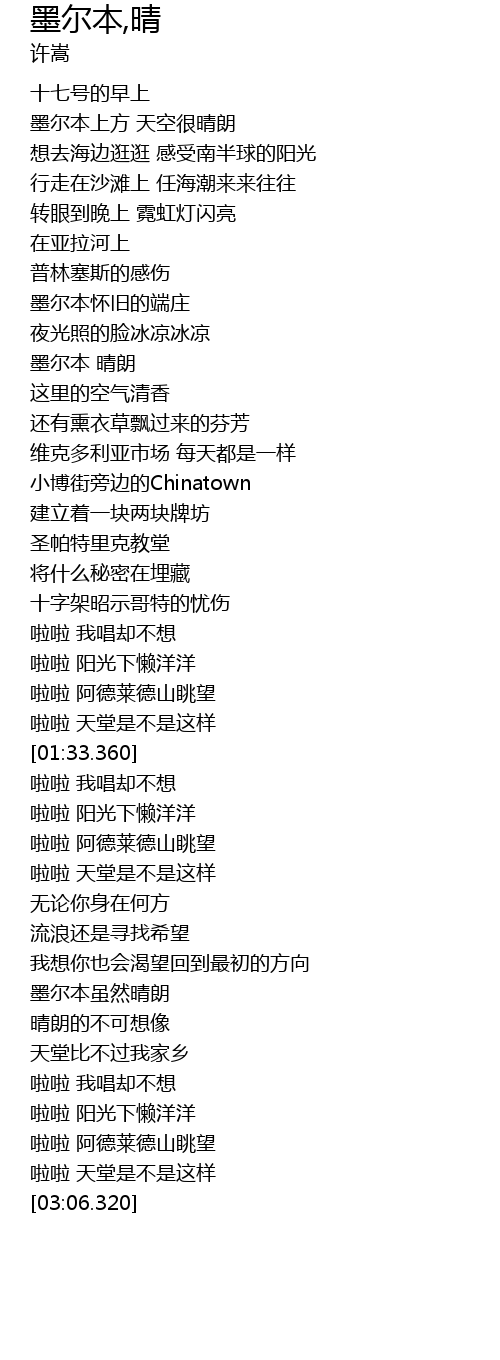 | [02:35.150] | 墨尔本虽然晴朗 |