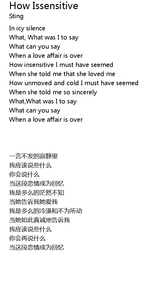 | Song | How Issensitive |