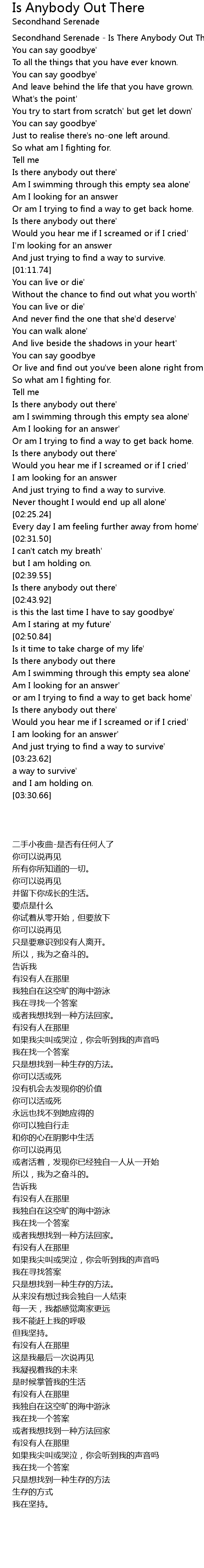 Secondhand Serenade - Is There Anybody Out There |