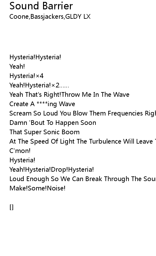| [01:47.40] | Loud Enough So We Can Break Through The Sound Barrier |