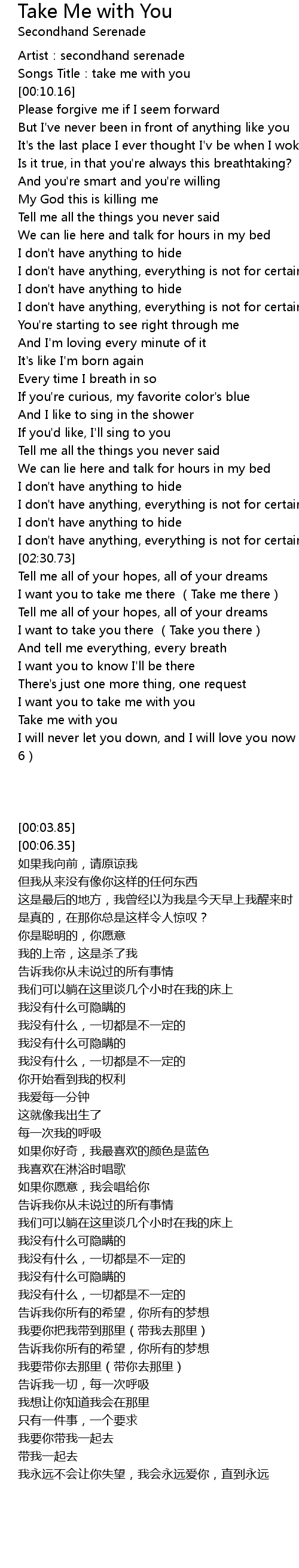 | [03:38.68] | I will never let you down, and I will love you now and for ever x 6 |