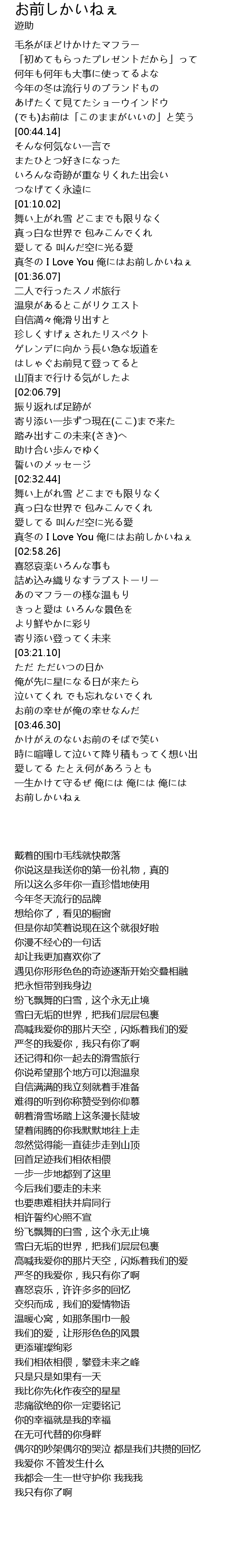 | [02:49.97] | 真冬の I Love You 俺にはお前しかいねぇ |