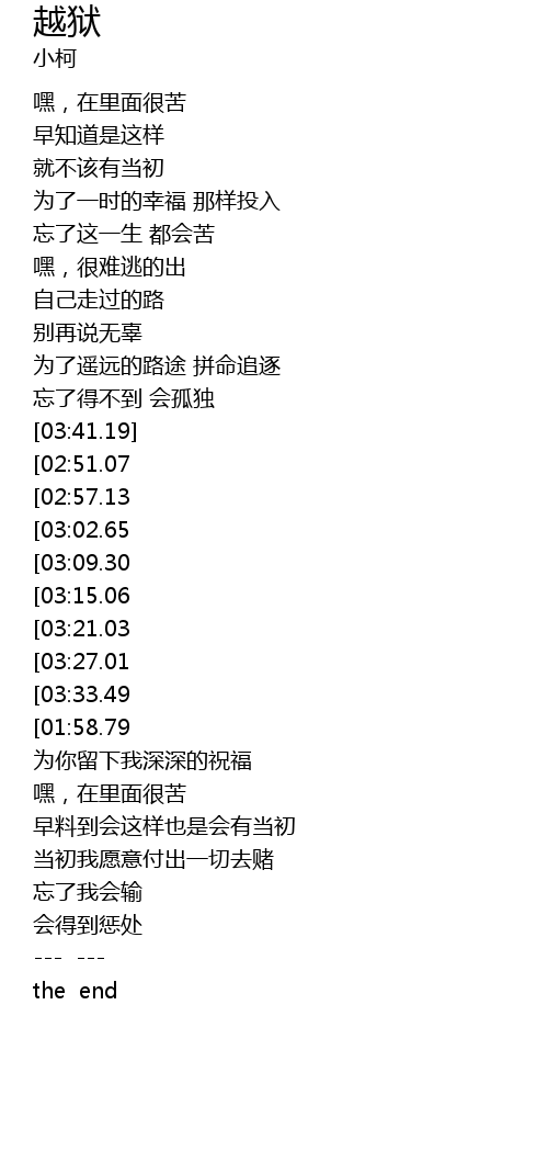 | [03:56.40][03:02.65][01:26.10] | 生命短促不该追求虚无 |
