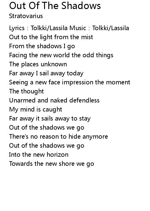 | From the shadows I go | |