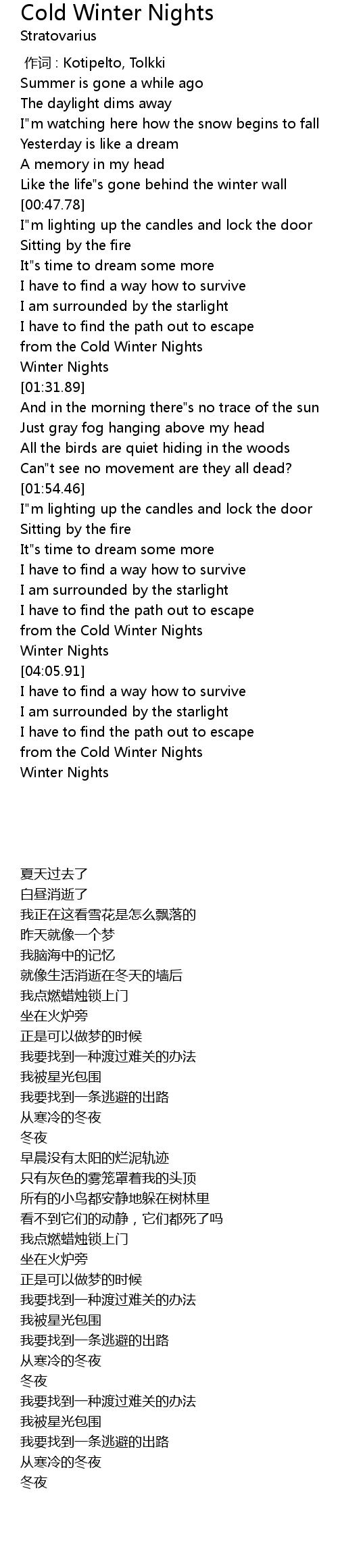 | [04:23.75] | from the Cold Winter Nights |