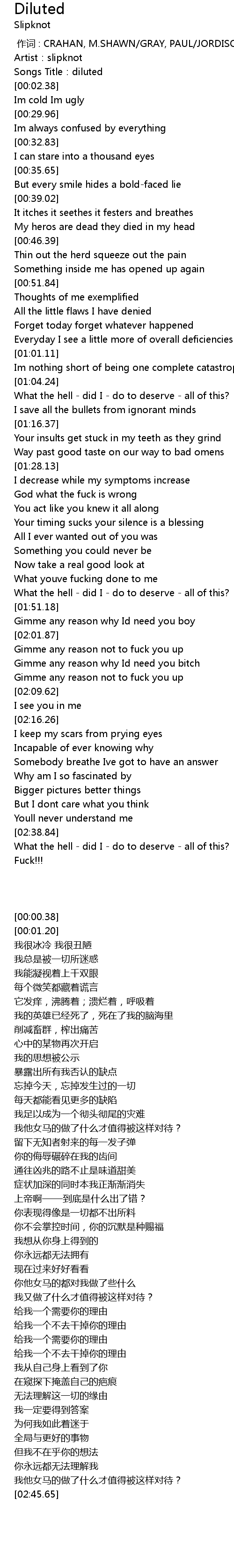 | [00:00.38] | Artist:slipknot |