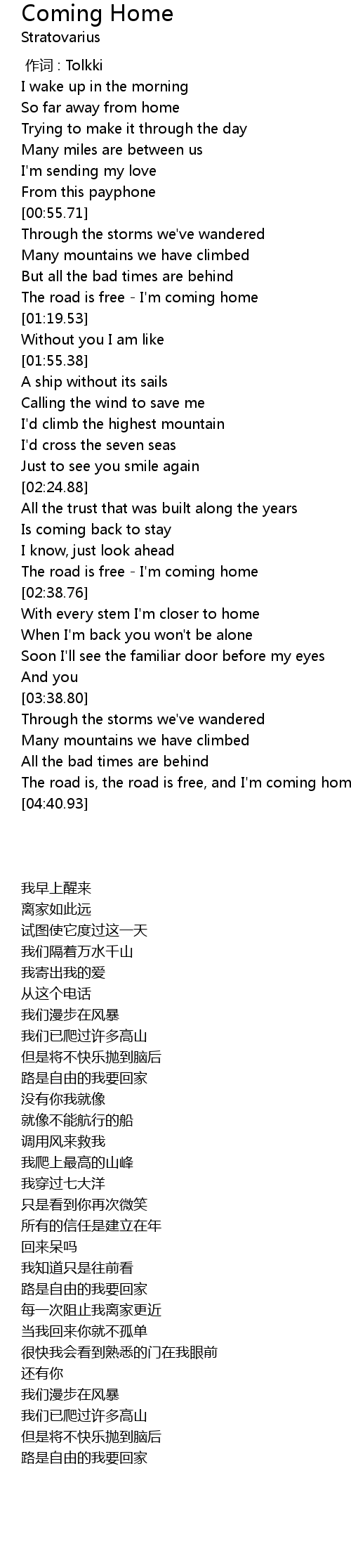 | [02:34.11] | The road is free - I'm coming home |