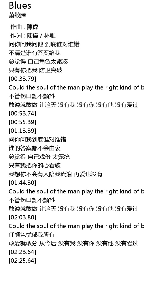 | [02:04.84] | Could the soul of the man play the right kind of blues |