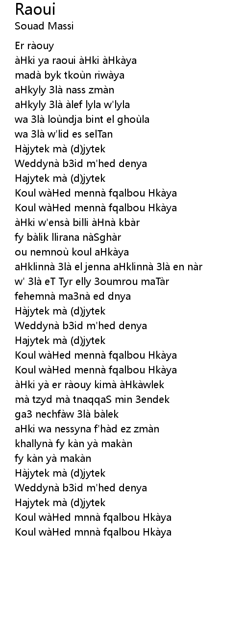 | Song | Raoui |