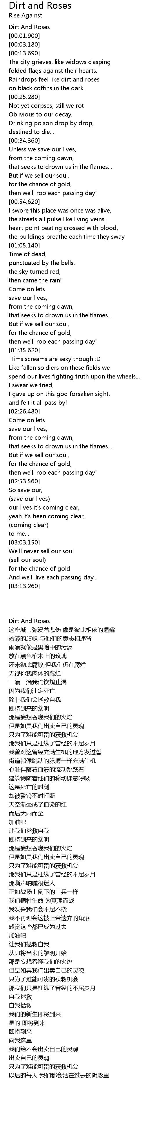 Raindrops feel like dirt and roses |