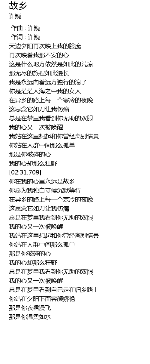 | [02:56.049] | 你在我的心里永远是故乡 |