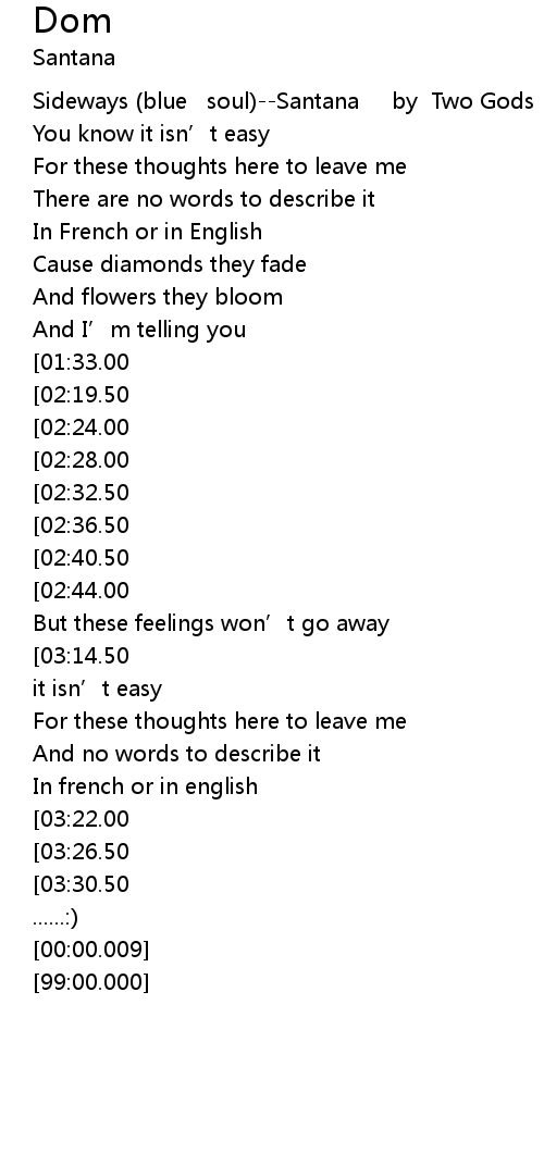 | [00:00.100] | Sideways (blue soul)--Santana by Two Gods |