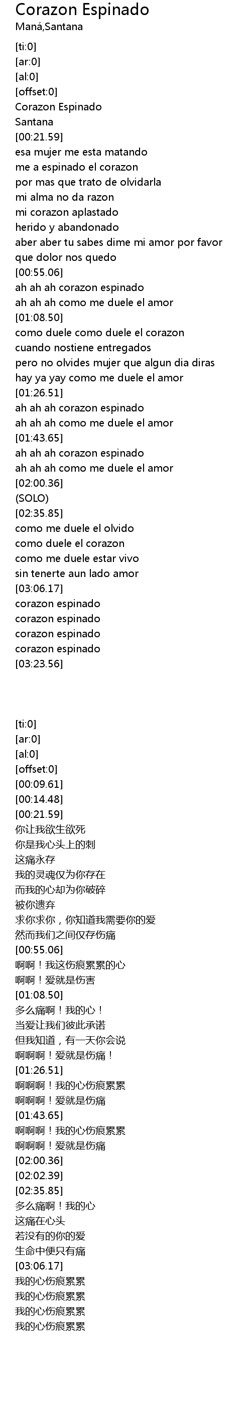| [00:48.34] | aber aber tu sabes dime mi amor por favor |