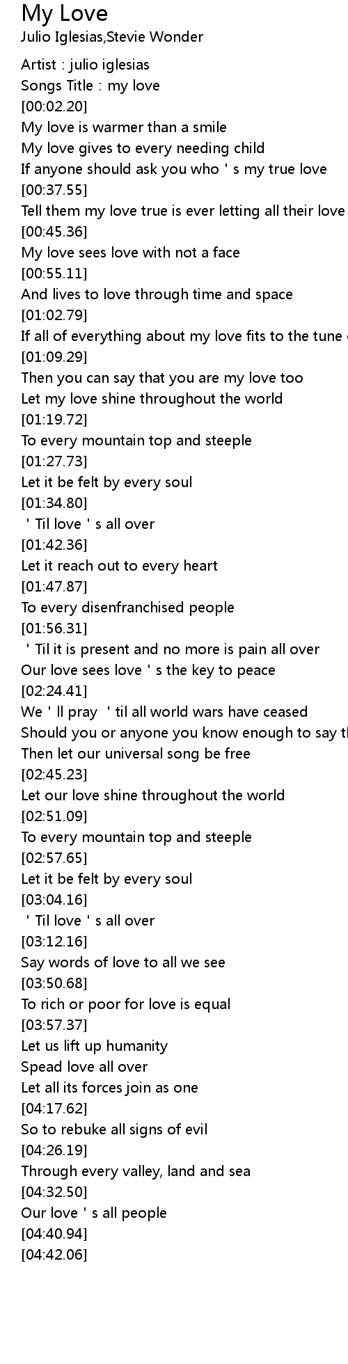 | [00:38.17] | Tell them my love true is ever letting all their love come through |