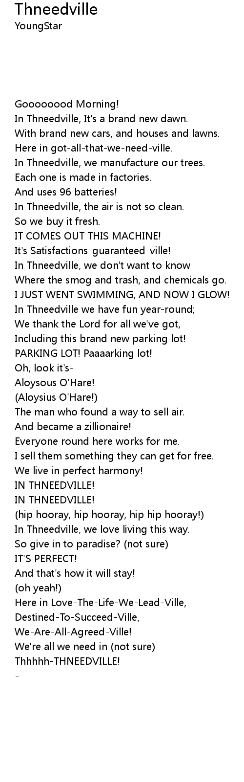 | [02:40.15] | Thhhhh-THNEEDVILLE! |