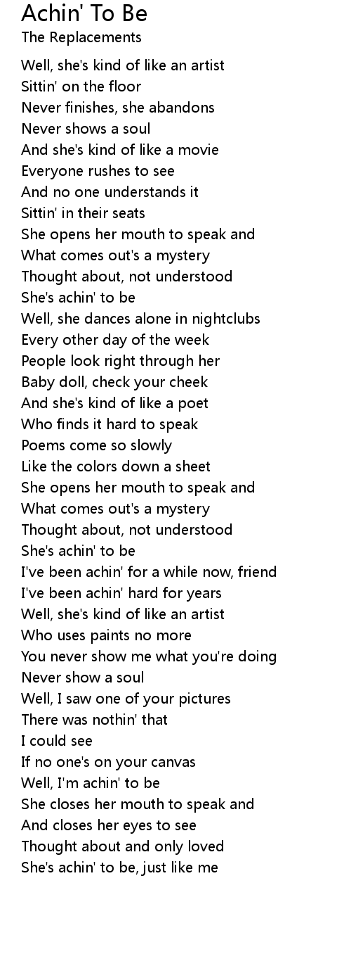Well, I'm achin' to be |