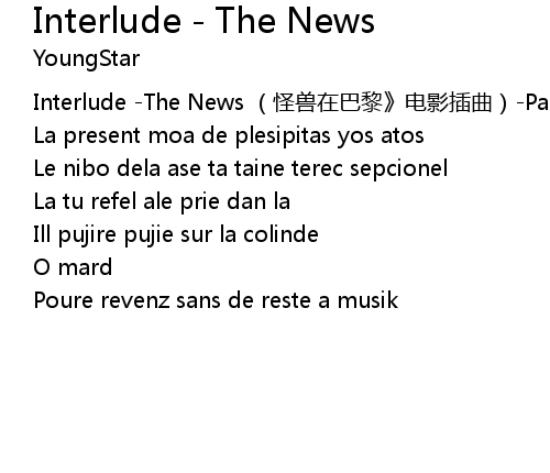 | Song | Interlude - The News |