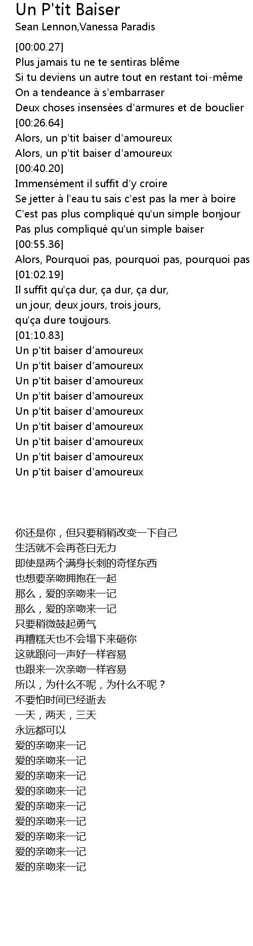| [01:31.07] | Un p'tit baiser d'amoureux |
