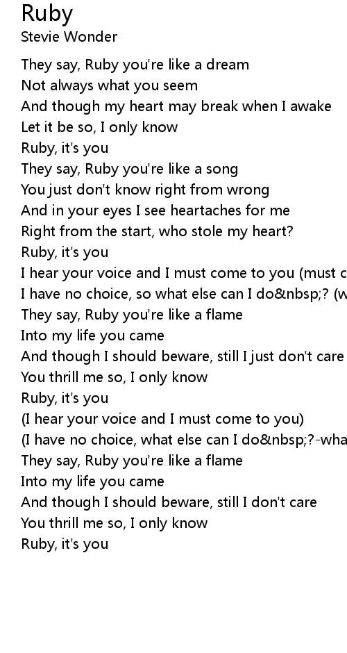 They say, Ruby you're like a song |