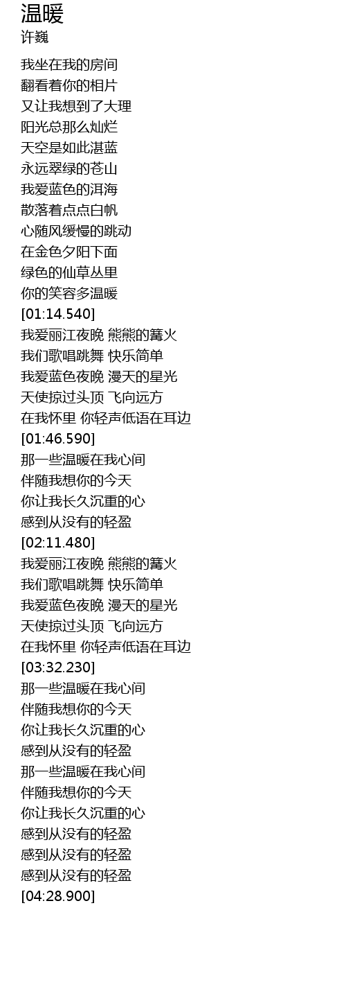 | [00:31.350] | 又让我想到了大理 |